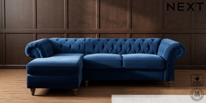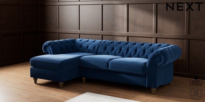 7.2.10 Gosford Highback II Deep Sit Medium Sofa Chaise - Left Hand Plush Velvet Easy Clean Navy Blue Low Turned - Mid | Made Click here to use our website with more accessibility support, for example screen readers