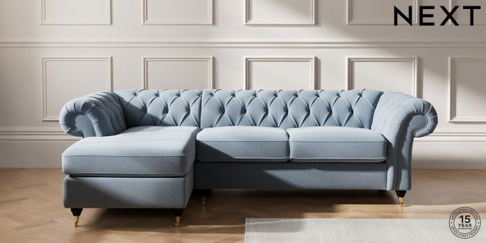 7.2.10 Gosford Highback II Deep Sit Medium Sofa Chaise - Left Hand Relaxed Linen Look Mid Blue Castor - Dark | Made Click here to use our website with more accessibility support, for example screen readers