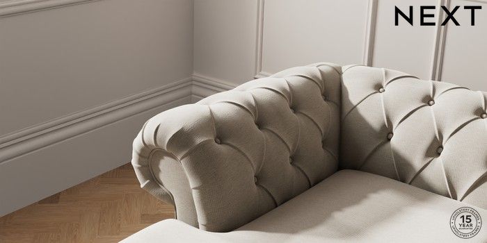 7.2.10 Gosford Highback II Deep Sit Medium Sofa Chaise - Left Hand Ripple Chenille Light Natural Modern Turned Metal Cap - Mid | Made Click here to use our website with more accessibility support, for example screen readers