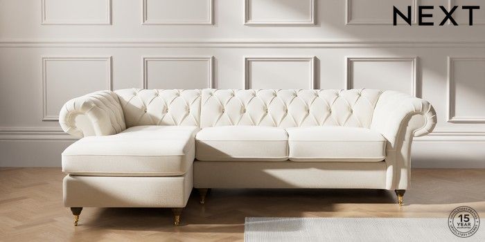 7.2.10 Gosford Highback II Deep Sit Medium Sofa Chaise - Left Hand Ripple Chenille Oyster Castor - Mid | Made Click here to use our website with more accessibility support, for example screen readers