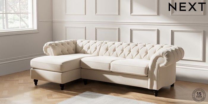 7.2.10 Gosford Highback II Deep Sit Medium Sofa Chaise - Left Hand Studio Chenille Oyster Low Turned - Dark | Made Click here to use our website with more accessibility support, for example screen readers