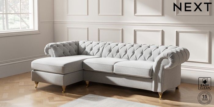 7.2.10 Gosford Highback II Deep Sit Medium Sofa Chaise - Left Hand Tweedy Blend Easy Clean Light Silver Grey Castor - Light | Made Click here to use our website with more accessibility support, for example screen readers