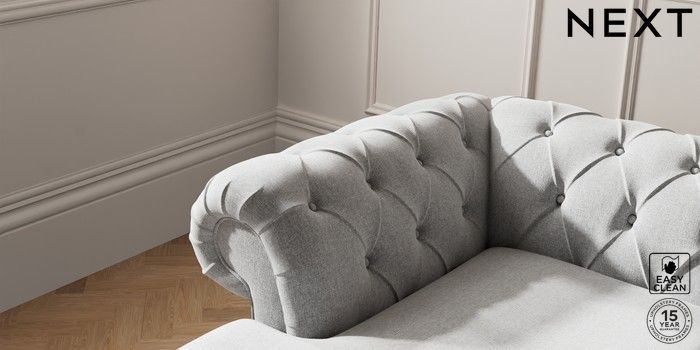 7.2.10 Gosford Highback II Deep Sit Medium Sofa Chaise - Left Hand Tweedy Blend Easy Clean Light Silver Grey Castor - Mid | Made Click here to use our website with more accessibility support, for example screen readers