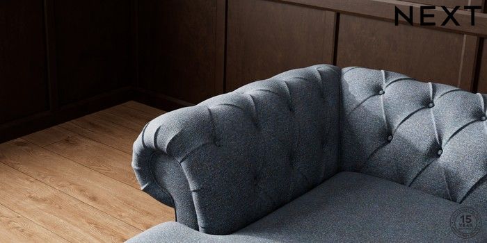 7.2.10 Gosford Highback II Deep Sit Medium Sofa Chaise - Left Hand Tweedy Chenille Navy Blue Castor - Dark | Made Click here to use our website with more accessibility support, for example screen readers