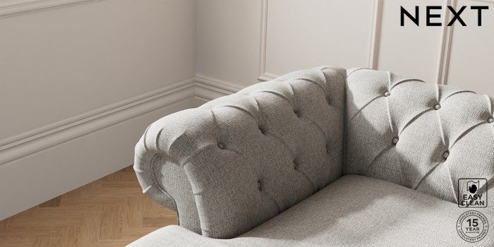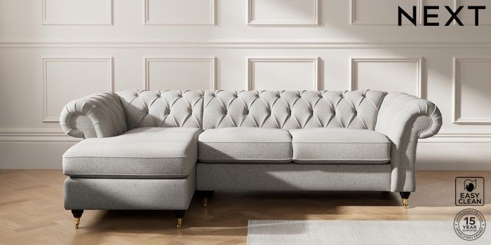 7.2.10 Gosford Highback II Deep Sit Medium Sofa Chaise - Left Hand Woven Chenille Easy Clean Light Grey Castor - Dark | Made Click here to use our website with more accessibility support, for example screen readers