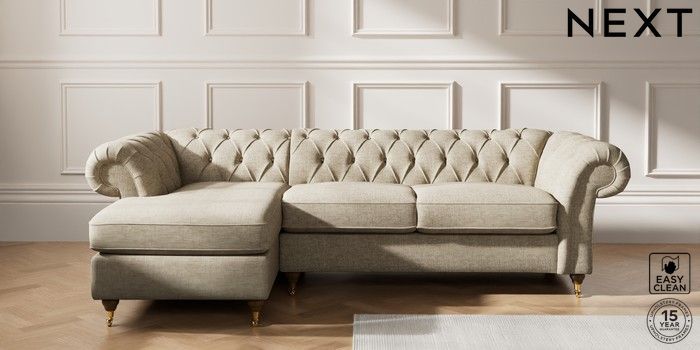 7.2.10 Gosford Highback II Deep Sit Medium Sofa Chaise - Left Hand Woven Chenille Easy Clean Mid Natural Castor - Mid | Made Click here to use our website with more accessibility support, for example screen readers