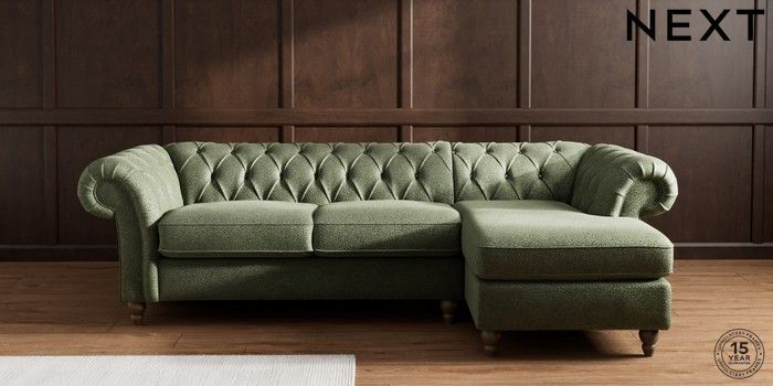 7.2.10 Gosford Highback II Deep Sit Medium Sofa Chaise - Right Hand Boucle Chenille Dark Moss Green Low Turned - Mid | Made Click here to use our website with more accessibility support, for example screen readers