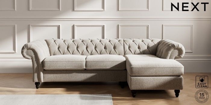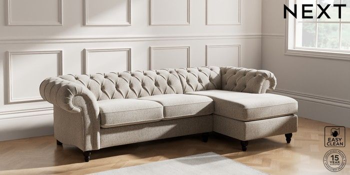 7.2.10 Gosford Highback II Deep Sit Medium Sofa Chaise - Right Hand Chunky Boucle Easy Clean Dove Low Turned - Dark | Made Click here to use our website with more accessibility support, for example screen readers