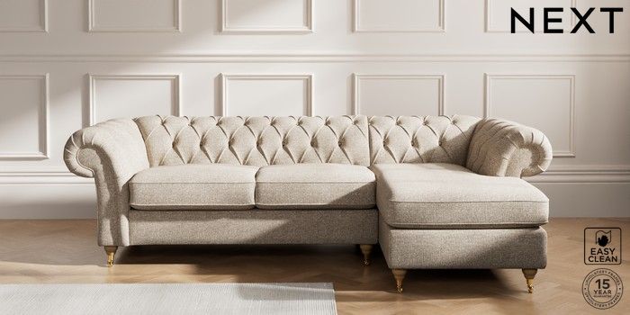 7.2.10 Gosford Highback II Deep Sit Medium Sofa Chaise - Right Hand Chunky Boucle Easy Clean Mid Natural Castor - Light | Made Click here to use our website with more accessibility support, for example screen readers