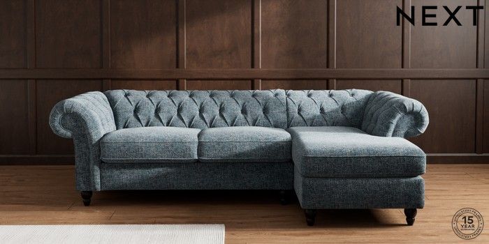 7.2.10 Gosford Highback II Deep Sit Medium Sofa Chaise - Right Hand Chunky Chenille Dark Navy Blue Low Turned - Dark | Made Click here to use our website with more accessibility support, for example screen readers