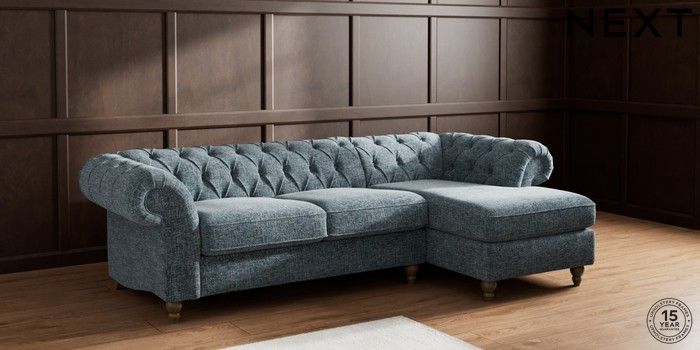 7.2.10 Gosford Highback II Deep Sit Medium Sofa Chaise - Right Hand Chunky Chenille Dark Navy Blue Low Turned - Mid | Made Click here to use our website with more accessibility support, for example screen readers