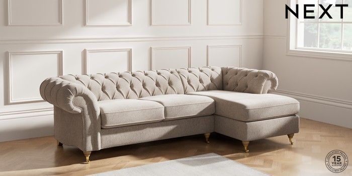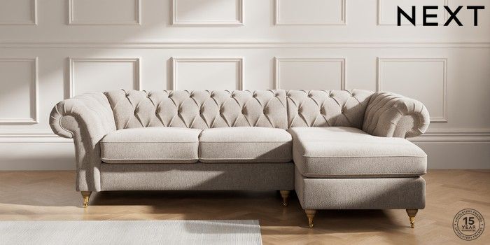 7.2.10 Gosford Highback II Deep Sit Medium Sofa Chaise - Right Hand Chunky Chenille Light Dove Castor - Light | Made Click here to use our website with more accessibility support, for example screen readers