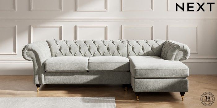 7.2.10 Gosford Highback II Deep Sit Medium Sofa Chaise - Right Hand Chunky Chenille Light Grey Castor - Dark | Made Click here to use our website with more accessibility support, for example screen readers
