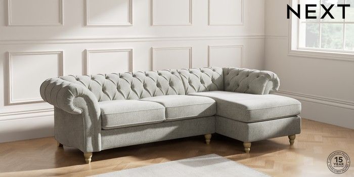 7.2.10 Gosford Highback II Deep Sit Medium Sofa Chaise - Right Hand Chunky Chenille Light Grey Low Turned - Light | Made Click here to use our website with more accessibility support, for example screen readers