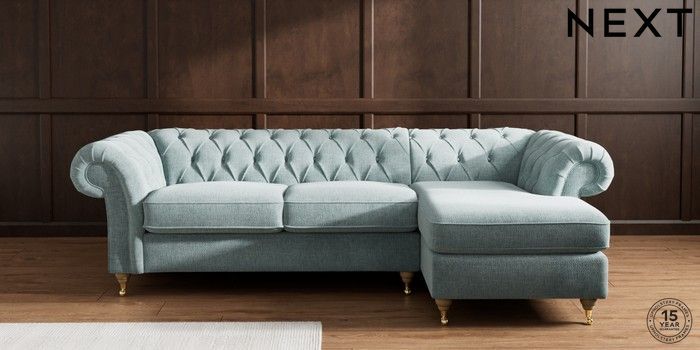 7.2.10 Gosford Highback II Deep Sit Medium Sofa Chaise - Right Hand Chunky Chenille Light Teal Green Castor - Light | Made Click here to use our website with more accessibility support, for example screen readers