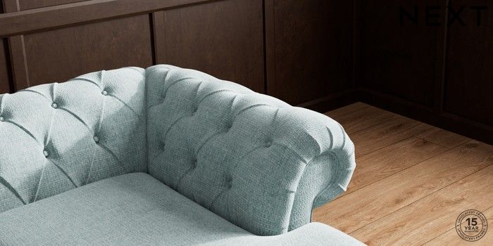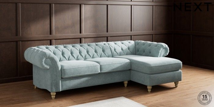 7.2.10 Gosford Highback II Deep Sit Medium Sofa Chaise - Right Hand Chunky Chenille Light Teal Green Low Turned - Light | Made Click here to use our website with more accessibility support, for example screen readers