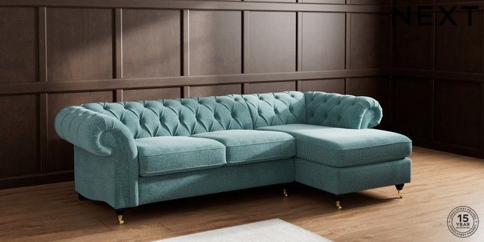 7.2.10 Gosford Highback II Deep Sit Medium Sofa Chaise - Right Hand Chunky Chenille Mid Teal Green Castor - Dark | Made Click here to use our website with more accessibility support, for example screen readers