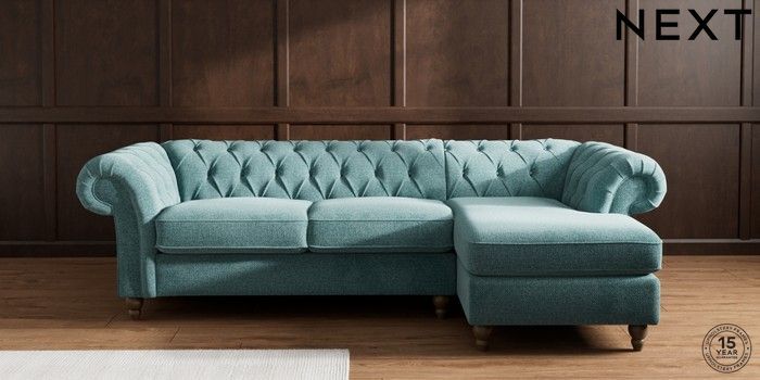 7.2.10 Gosford Highback II Deep Sit Medium Sofa Chaise - Right Hand Chunky Chenille Mid Teal Green Low Turned - Mid | Made Click here to use our website with more accessibility support, for example screen readers