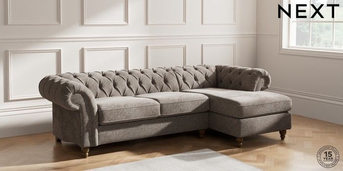 7.2.10 Gosford Highback II Deep Sit Medium Sofa Chaise - Right Hand Chunky Chenille Mink Brown Low Turned - Mid | Made Click here to use our website with more accessibility support, for example screen readers