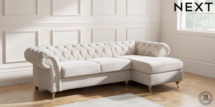 7.2.10 Gosford Highback II Deep Sit Medium Sofa Chaise - Right Hand Chunky Chenille Oyster Castor - Light | Made Click here to use our website with more accessibility support, for example screen readers