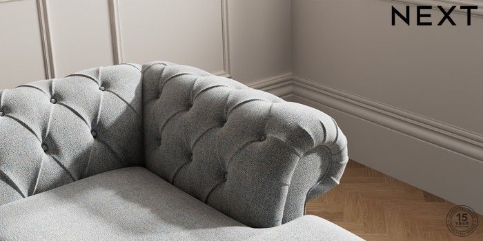 7.2.10 Gosford Highback II Deep Sit Medium Sofa Chaise - Right Hand Chunky Marl Mid Grey Modern Turned Metal Cap - Mid | Made Click here to use our website with more accessibility support, for example screen readers