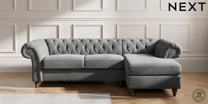 7.2.10 Gosford Highback II Deep Sit Medium Sofa Chaise - Right Hand Chunky Texture Dark Grey Low Turned - Mid | Made Click here to use our website with more accessibility support, for example screen readers