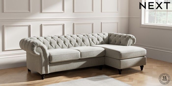 7.2.10 Gosford Highback II Deep Sit Medium Sofa Chaise - Right Hand Chunky Texture Dove Low Turned - Dark | Made Click here to use our website with more accessibility support, for example screen readers
