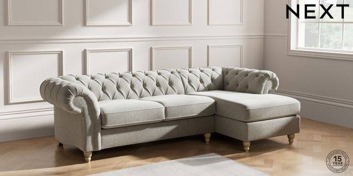 7.2.10 Gosford Highback II Deep Sit Medium Sofa Chaise - Right Hand Chunky Texture Dove Low Turned - Light | Made Click here to use our website with more accessibility support, for example screen readers