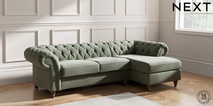 7.2.10 Gosford Highback II Deep Sit Medium Sofa Chaise - Right Hand Chunky Texture Mid Forest Green Low Turned - Mid | Made Click here to use our website with more accessibility support, for example screen readers