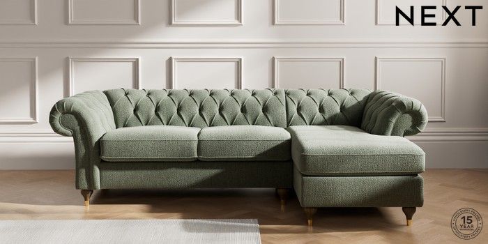 7.2.10 Gosford Highback II Deep Sit Medium Sofa Chaise - Right Hand Chunky Texture Mid Forest Green Modern Turned Metal Cap - Mid | Made Click here to use our website with more accessibility support, for example screen readers