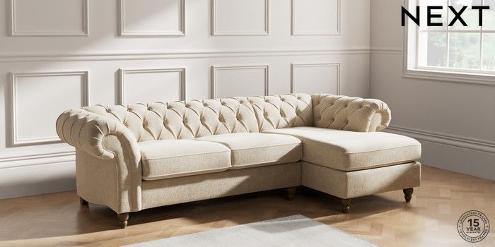 7.2.10 Gosford Highback II Deep Sit Medium Sofa Chaise - Right Hand Chunky Weave Cream Low Turned - Mid | Made Click here to use our website with more accessibility support, for example screen readers