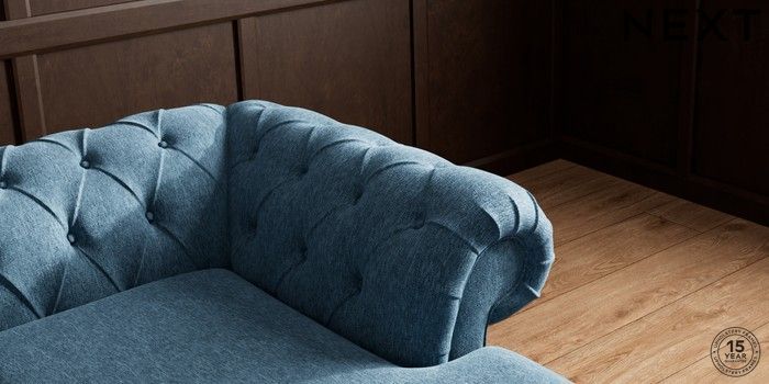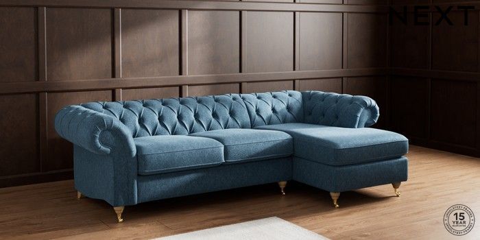7.2.10 Gosford Highback II Deep Sit Medium Sofa Chaise - Right Hand Cotswold Chenille Dark Blue Castor - Light | Made Click here to use our website with more accessibility support, for example screen readers