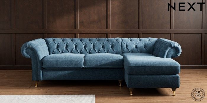 7.2.10 Gosford Highback II Deep Sit Medium Sofa Chaise - Right Hand Cotswold Chenille Dark Blue Castor - Mid | Made Click here to use our website with more accessibility support, for example screen readers