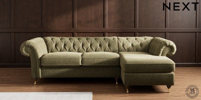 7.2.10 Gosford Highback II Deep Sit Medium Sofa Chaise - Right Hand Cotswold Chenille Dark Green Castor - Mid | Made Click here to use our website with more accessibility support, for example screen readers