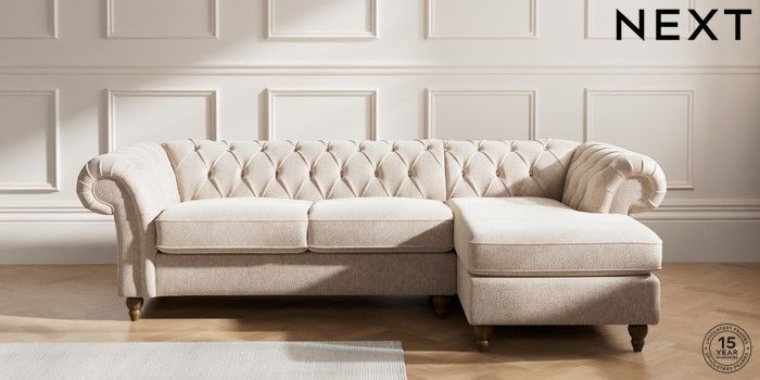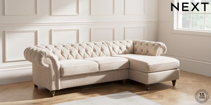 7.2.10 Gosford Highback II Deep Sit Medium Sofa Chaise - Right Hand Cotswold Chenille Light Natural Low Turned - Mid | Made Click here to use our website with more accessibility support, for example screen readers