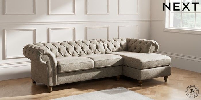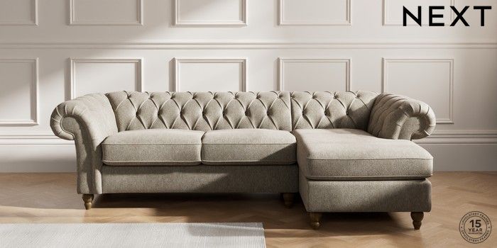 7.2.10 Gosford Highback II Deep Sit Medium Sofa Chaise - Right Hand Cotswold Chenille Mid Mink Brown Low Turned - Mid | Made Click here to use our website with more accessibility support, for example screen readers