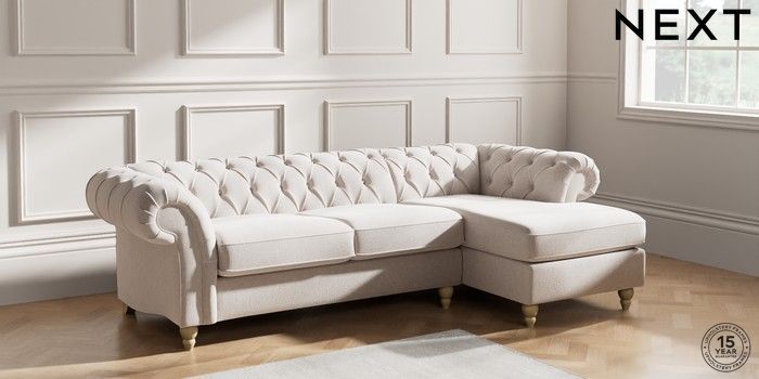 7.2.10 Gosford Highback II Deep Sit Medium Sofa Chaise - Right Hand Cotswold Chenille Oyster Low Turned - Light | Made Click here to use our website with more accessibility support, for example screen readers