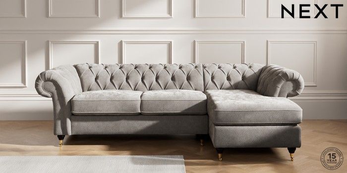 7.2.10 Gosford Highback II Deep Sit Medium Sofa Chaise - Right Hand Distressed Velour French Grey Castor - Dark | Made Click here to use our website with more accessibility support, for example screen readers