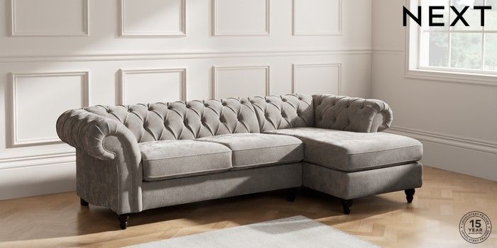 7.2.10 Gosford Highback II Deep Sit Medium Sofa Chaise - Right Hand Distressed Velour French Grey Low Turned - Dark | Made Click here to use our website with more accessibility support, for example screen readers
