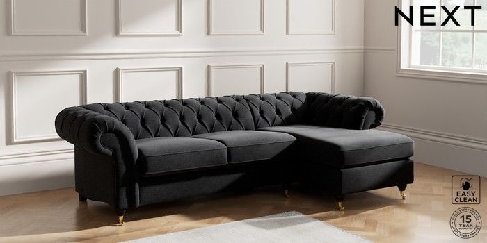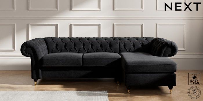 7.2.10 Gosford Highback II Deep Sit Medium Sofa Chaise - Right Hand Fine Chenille Easy Clean Black Castor - Dark | Made Click here to use our website with more accessibility support, for example screen readers