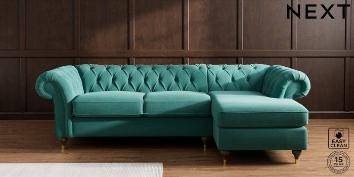 7.2.10 Gosford Highback II Deep Sit Medium Sofa Chaise - Right Hand Fine Chenille Easy Clean Dark Juniper Green Modern Turned Metal Cap - Mid | Made Click here to use our website with more accessibility support, for example screen readers