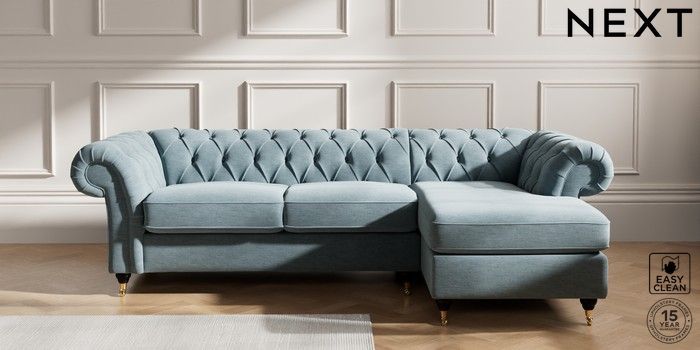 7.2.10 Gosford Highback II Deep Sit Medium Sofa Chaise - Right Hand Fine Chenille Easy Clean Mid Blue Castor - Dark | Made Click here to use our website with more accessibility support, for example screen readers