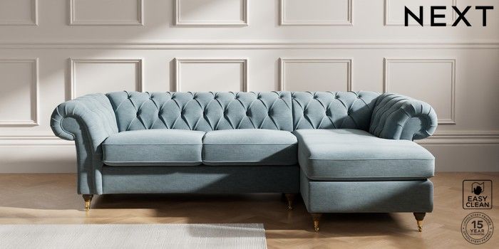 7.2.10 Gosford Highback II Deep Sit Medium Sofa Chaise - Right Hand Fine Chenille Easy Clean Mid Blue Castor - Mid | Made Click here to use our website with more accessibility support, for example screen readers