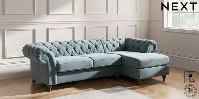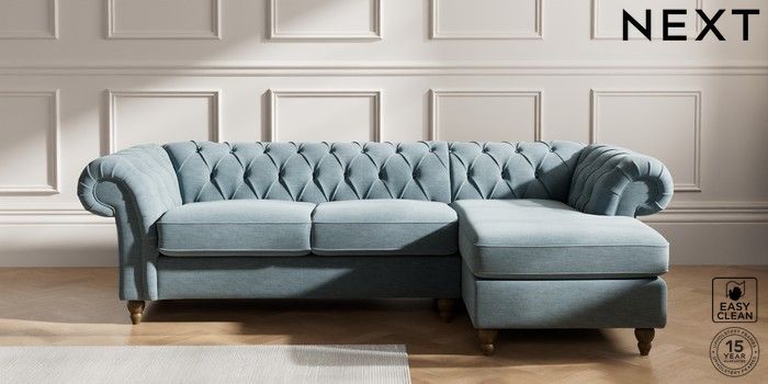 7.2.10 Gosford Highback II Deep Sit Medium Sofa Chaise - Right Hand Fine Chenille Easy Clean Mid Blue Low Turned - Mid | Made Click here to use our website with more accessibility support, for example screen readers