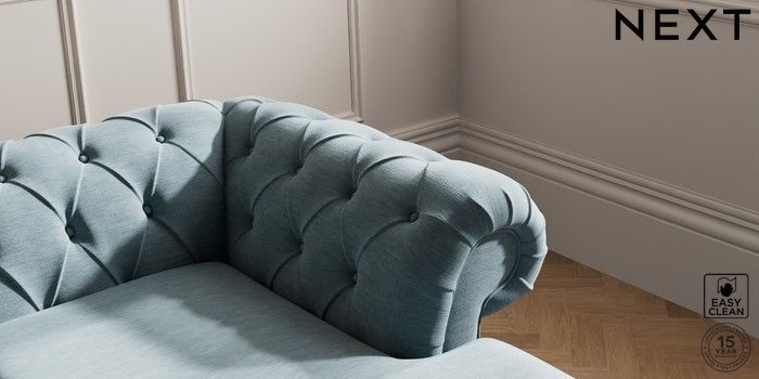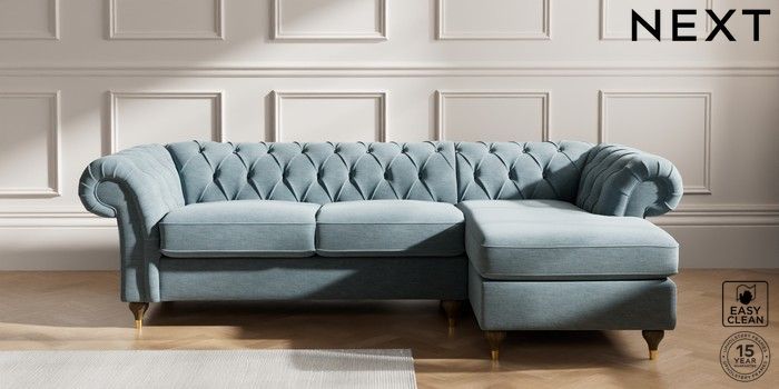 7.2.10 Gosford Highback II Deep Sit Medium Sofa Chaise - Right Hand Fine Chenille Easy Clean Mid Blue Modern Turned Metal Cap - Mid | Made Click here to use our website with more accessibility support, for example screen readers