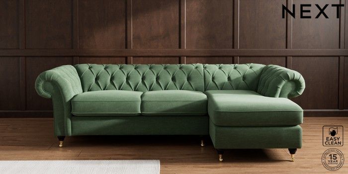 7.2.10 Gosford Highback II Deep Sit Medium Sofa Chaise - Right Hand Fine Chenille Easy Clean Mid Khaki Green Castor - Dark | Made Click here to use our website with more accessibility support, for example screen readers