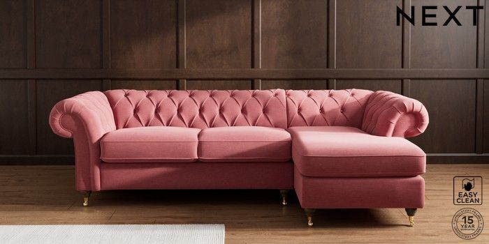 7.2.10 Gosford Highback II Deep Sit Medium Sofa Chaise - Right Hand Fine Chenille Easy Clean Mid Pink Castor - Mid | Made Click here to use our website with more accessibility support, for example screen readers