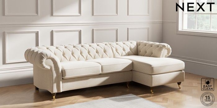 7.2.10 Gosford Highback II Deep Sit Medium Sofa Chaise - Right Hand Fine Chenille Easy Clean Oyster Castor - Mid | Made Click here to use our website with more accessibility support, for example screen readers
