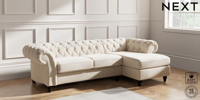 7.2.10 Gosford Highback II Deep Sit Medium Sofa Chaise - Right Hand Fine Chenille Easy Clean Oyster Low Turned - Dark | Made Click here to use our website with more accessibility support, for example screen readers