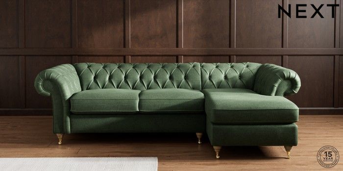 7.2.10 Gosford Highback II Deep Sit Medium Sofa Chaise - Right Hand Luxe Chenille Dark Green Castor - Light | Made Click here to use our website with more accessibility support, for example screen readers